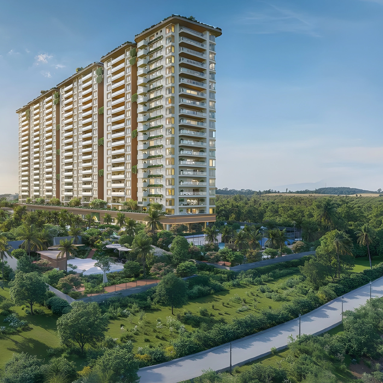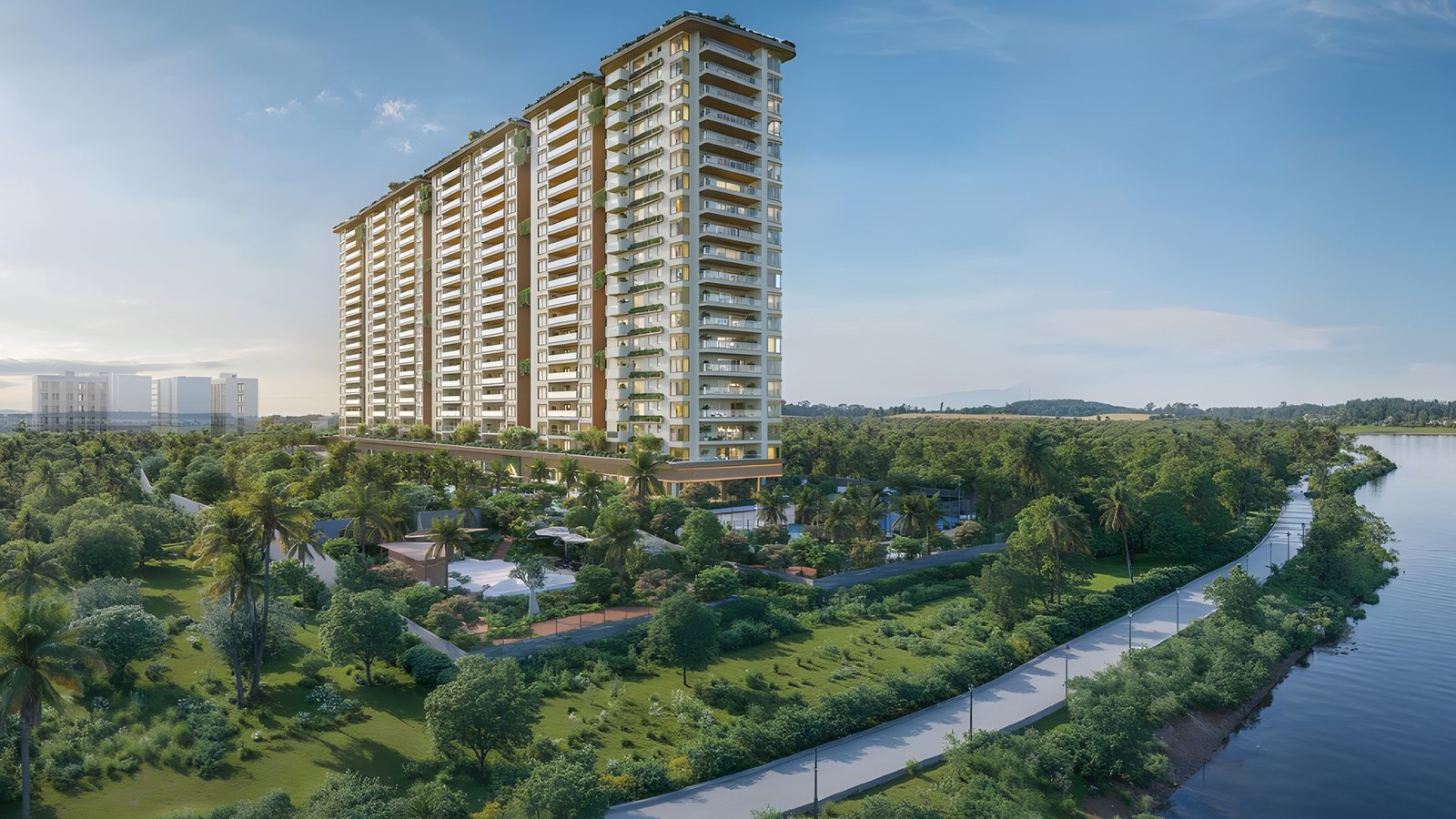 Experience rare lakefront living at MAIA Pelican Gardens - 126 luxury 4 BHK apartments and 7 exclusive penthouses nestled beside Jakkur Lake, North Bangalore. Spread across 4.81 acres, it's a sanctuary where nature, privacy, and design come together seamlessly.
